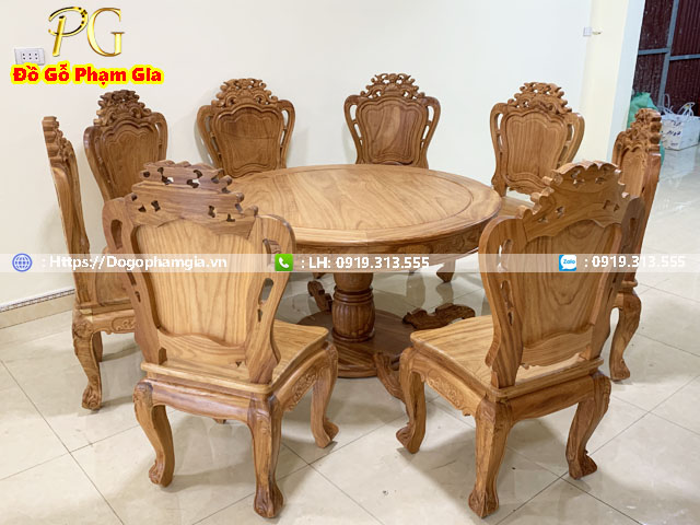 - Bộ bàn ăn gồm 1 bàn tròn và 8 ghế ăn ( số ghế có thể thay đổi tùy vào nhu cầu của khách hàng )
