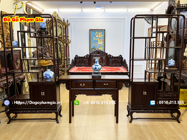 Bàn bày đồ gỗ gụ lối tàu vừa đáp ứng công năng sử dụng và trang trí không gian