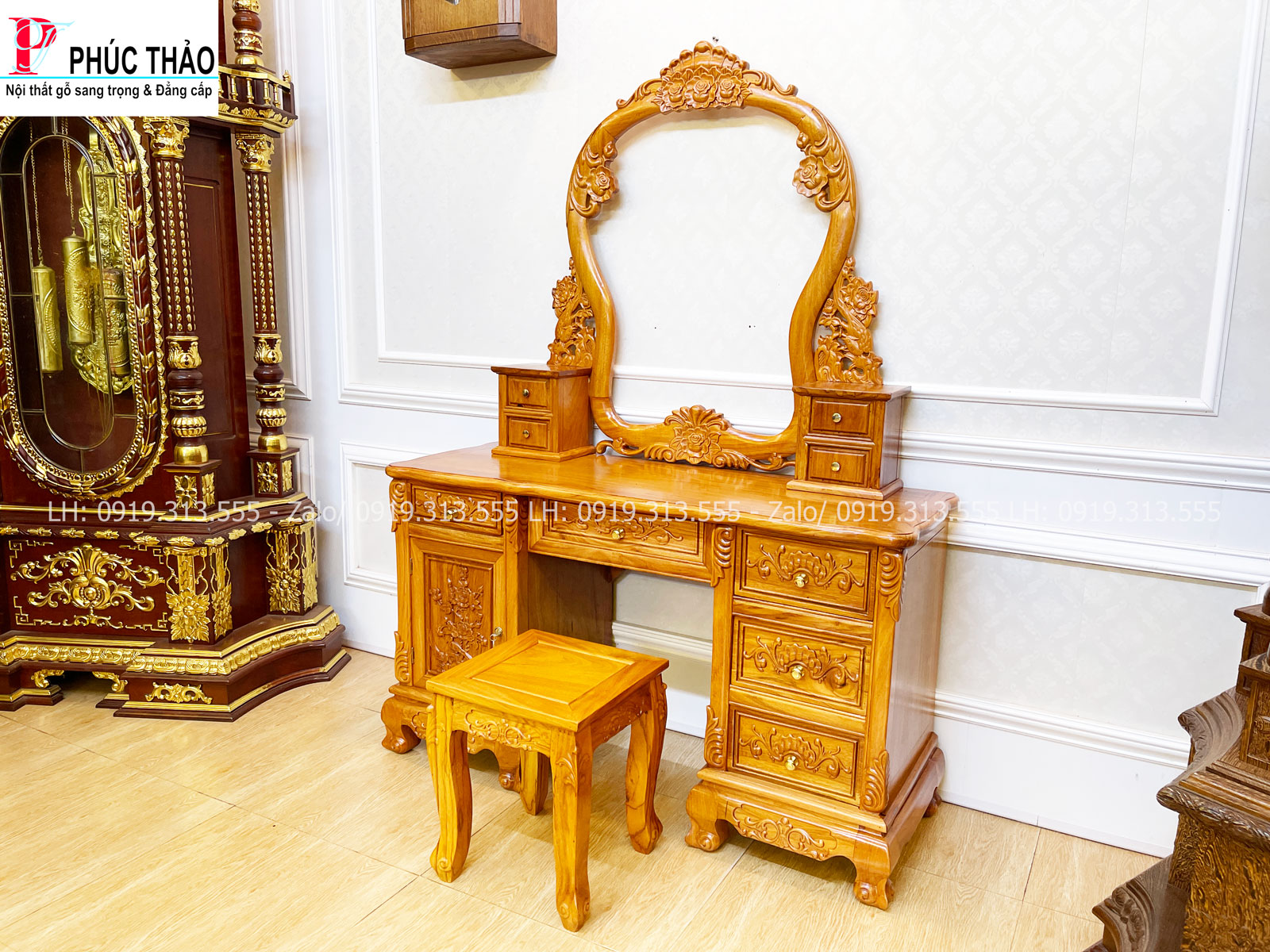 Mua bàn trang điểm chạm hoa hồng tại Đồ Gỗ Phạm Gia