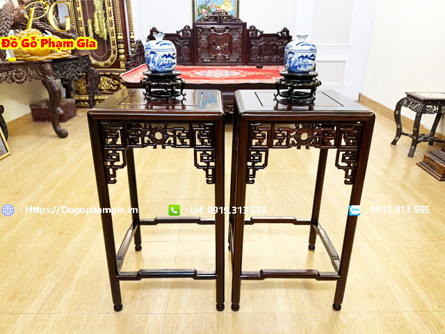 Thiết kế mặt đôn rộng vừa phải, khung gỗ gụ chắc khỏe cùng hệ giằng ngang kiên cố mang lại tính tiện ích cao, phù hợp sử dụng trong phòng khách, phòng thờ, phòng trà hay sảnh đón tiếp.