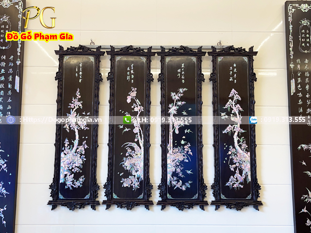 Thông tin kích thước tranh tứ quý gỗ gụ cẩn ốc