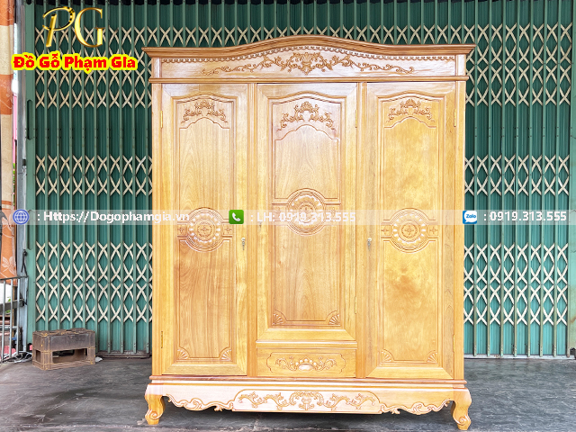 Mua tủ áo gỗ gụ 3 buồng đẹp tại Đồ Gỗ Phạm Gia