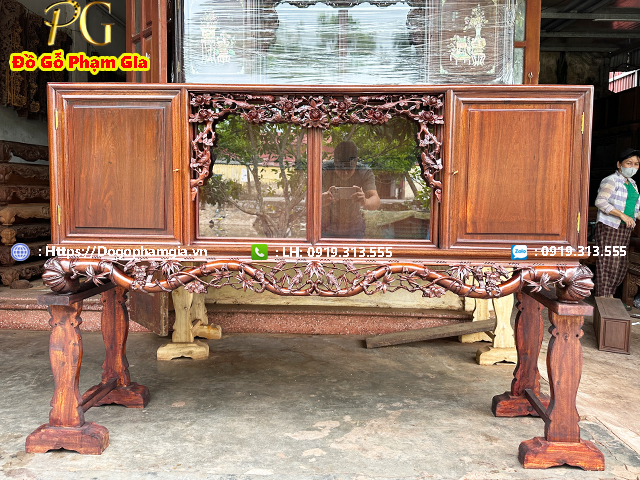 - Tên sản phẩm : Tủ chè chạm hoa hồng gỗ gụ