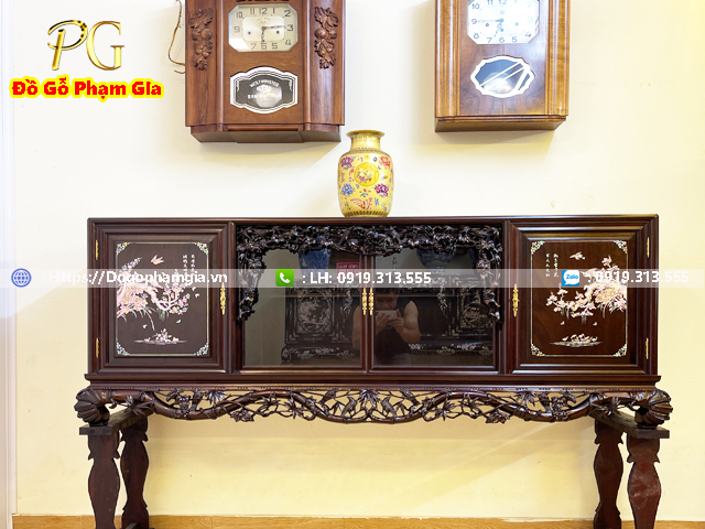 Đồ Gỗ Phạm Gia cơ sở sản xuất tủ chè gỗ gụ khảm mai treo